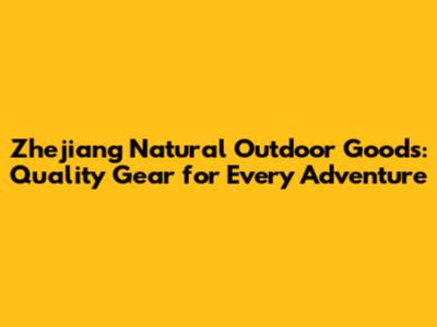 Zhejiang Natural Outdoor Goods: Quality Gear For Every Adventure